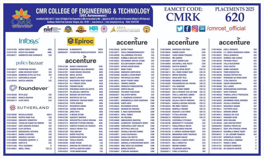 Hearty Congratulations to the students placed through campus recruitment in Microsoft, Rubrik, JPMorgan Chase & Co, Amazon, Juspay, Zscaler, Amadeus, Deloitte, DeltaX, EPAM, ZeroCodeHR, DBS, Accolite Digital, ARCADIS IBI, Lumen, IBM, Accenture, Cognizant, Capgemini, LTIMindtree, Virtusa, Infosys, Wipro, MPhasis, UST, Byteridge, JSW, Ernst & Young, Wiley Edge, TATA Consultancy Services, TATA Technologies, TATA Advanced Systems, NTT Data, Hexaware, Optum, JBM, Tech Mahindra and so on.